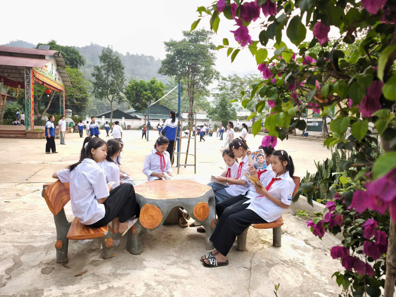 Ngay trong khuôn viên trường, dưới bóng cây xanh mát và trong không khí trong lành nơi miền núi, các em học sinh đã cùng nhau tham gia nhiều hoạt động phong phú: từ văn nghệ, thể dục thể thao, đến đọc sách báo và cờ vua trí tuệ. Mỗi hoạt động đều được thầy cô định hướng tổ chức bài bản, tạo nên môi trường rèn luyện vừa vui tươi vừa bổ ích.