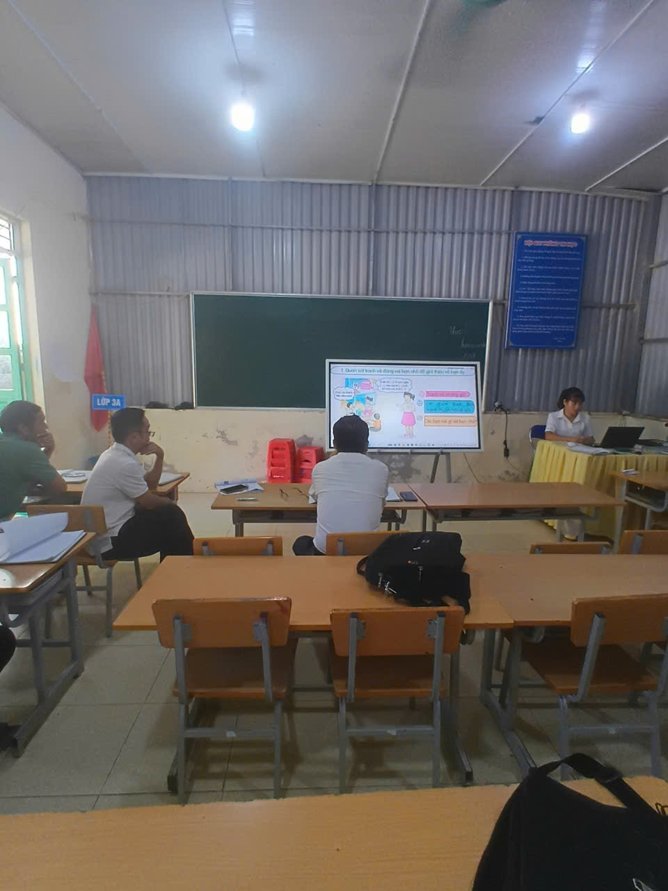 Trong phần minh họa bài dạy, giáo viên phụ trách đã vận dụng linh hoạt các phương pháp hiện đại, kết hợp với bảng tương tác điện tử để tạo hứng thú cho học sinh. Các nội dung trọng tâm được thảo luận xoay quanh cách khơi gợi vốn từ, vốn sống cho học sinh dân tộc; phương pháp hướng dẫn học sinh viết đoạn văn ngắn gọn, đúng ý, đúng ngữ pháp; cũng như vai trò của hoạt động nói, kể chuyện và trải nghiệm trong việc hình thành kỹ năng viết. Những ý kiến đóng góp của các thầy cô trong tổ đều thể hiện tinh thần trách nhiệm và sự tâm huyết với nghề, với mong muốn mỗi tiết học Tiếng Việt không chỉ giúp học sinh viết tốt hơn, mà còn giúp các em mạnh dạn, tự tin giao tiếp bằng tiếng Việt trong cuộc sống hằng ngày.