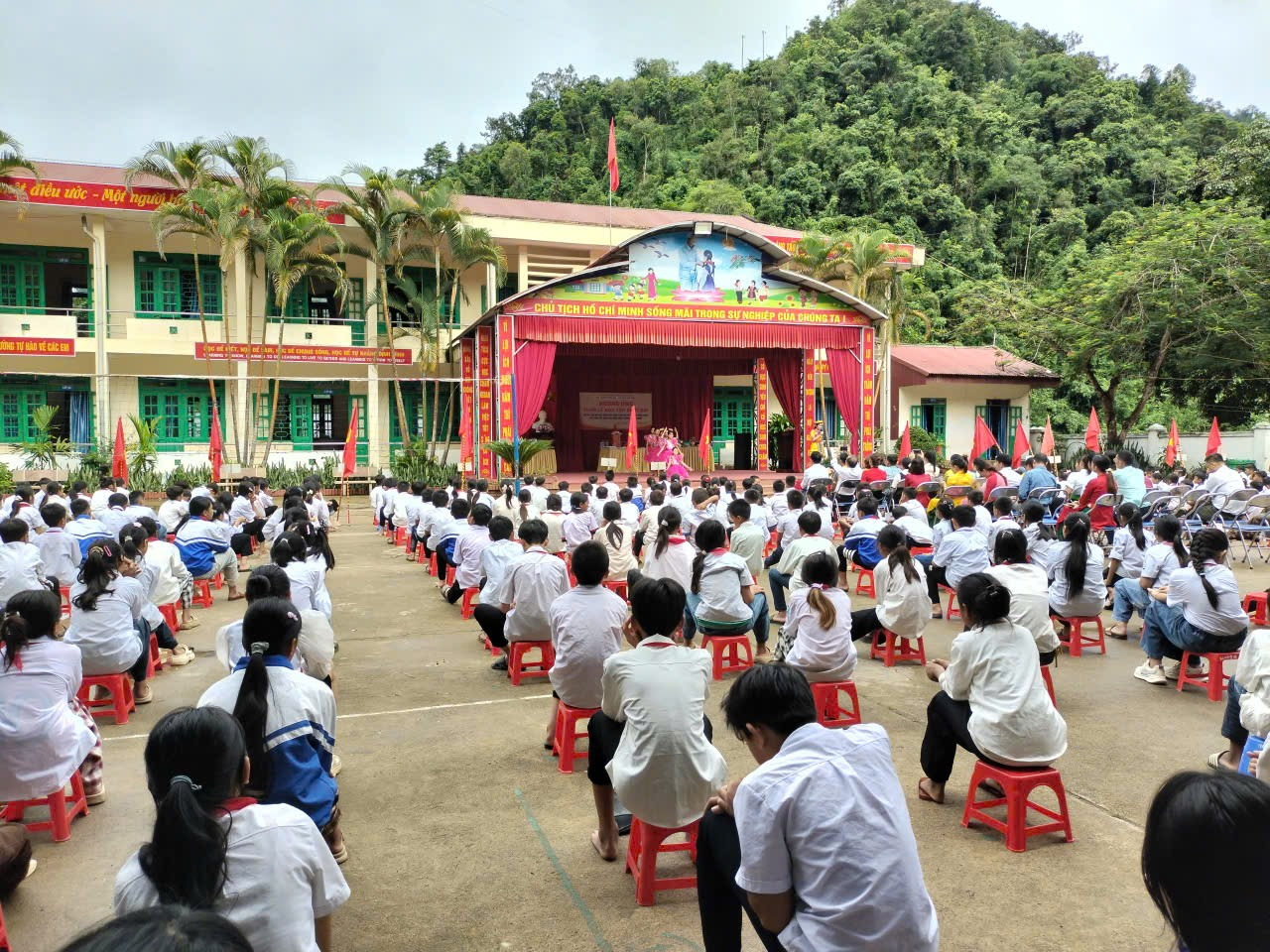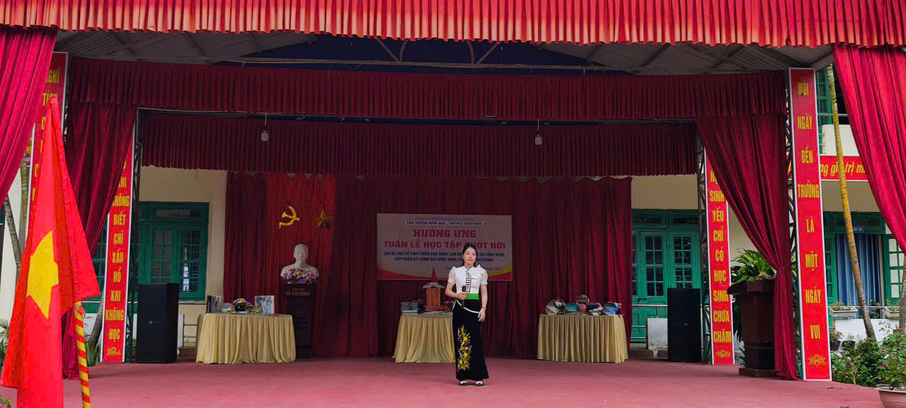 Mở đầu chương trình là các tiết mục văn nghệ đặc sắc do học sinh nhà trường biểu diễn, tạo nên bầu không khí sôi nổi, phấn khởi chào mừng. Thầy Lò Văn Bốn – Bí thư Chi bộ - Hiệu trưởng nhà trường đã phát biểu chỉ đạo, nhấn mạnh tầm quan trọng của việc học tập thường xuyên, liên tục để mỗi người dân có thể phát triển bản thân, làm chủ tri thức, công nghệ, qua đó góp phần xây dựng quê hương, đất nước hùng cường, thịnh vượng.