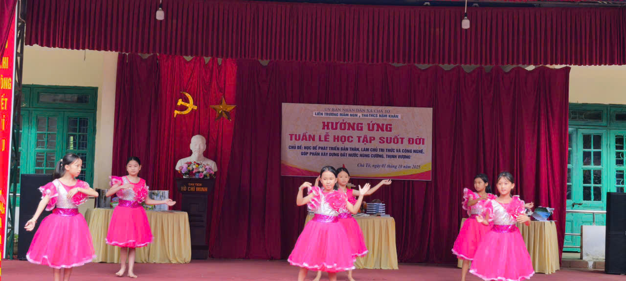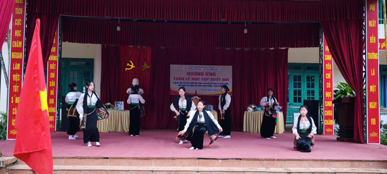 Tiết mục văn nghệ chào mừng Tuần lễ Học tập suốt đời năm 2025 tại Liên trường Mầm non, Tiểu học & THCS Nậm Khẩn.