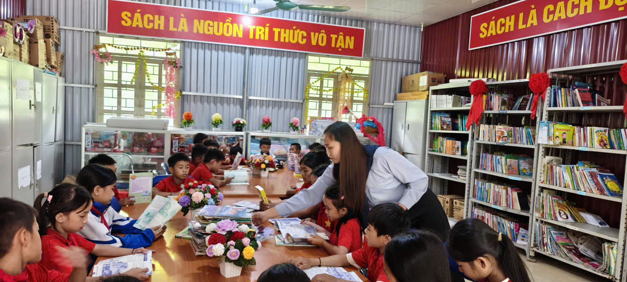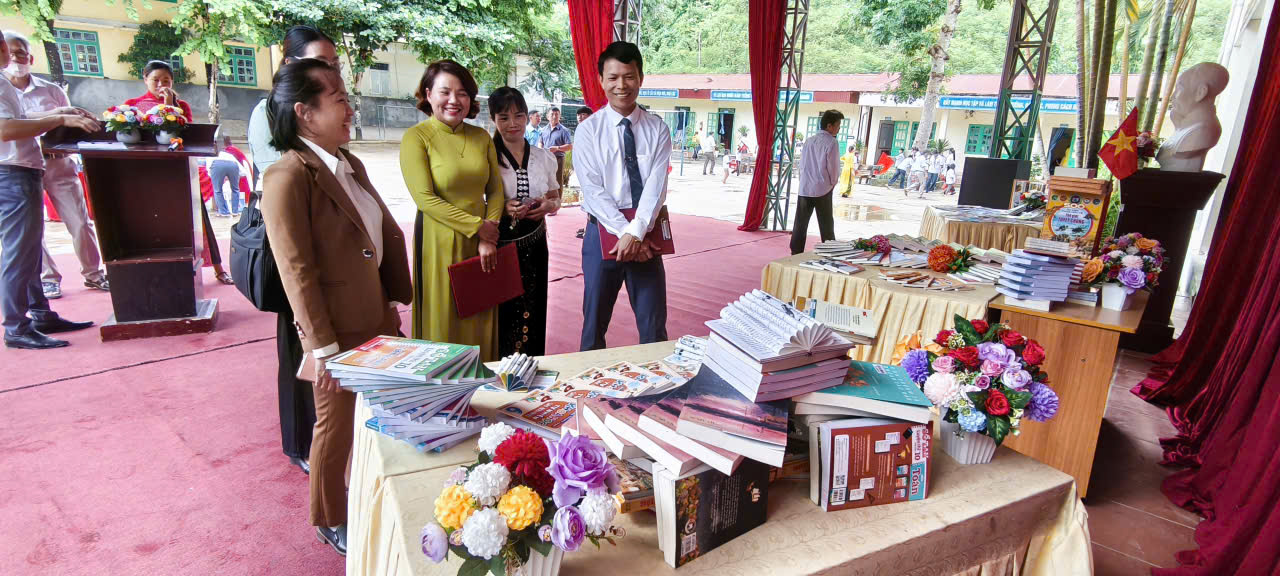 Điểm nhấn của buổi lễ là hoạt động trưng bày và giới thiệu sách. Học sinh chăm chú đọc, trao đổi, chia sẻ những cuốn sách hay, bổ ích. Đây là một hình thức thiết thực giúp nuôi dưỡng văn hóa đọc, khơi gợi niềm say mê học tập suốt đời ngay từ tuổi học trò.